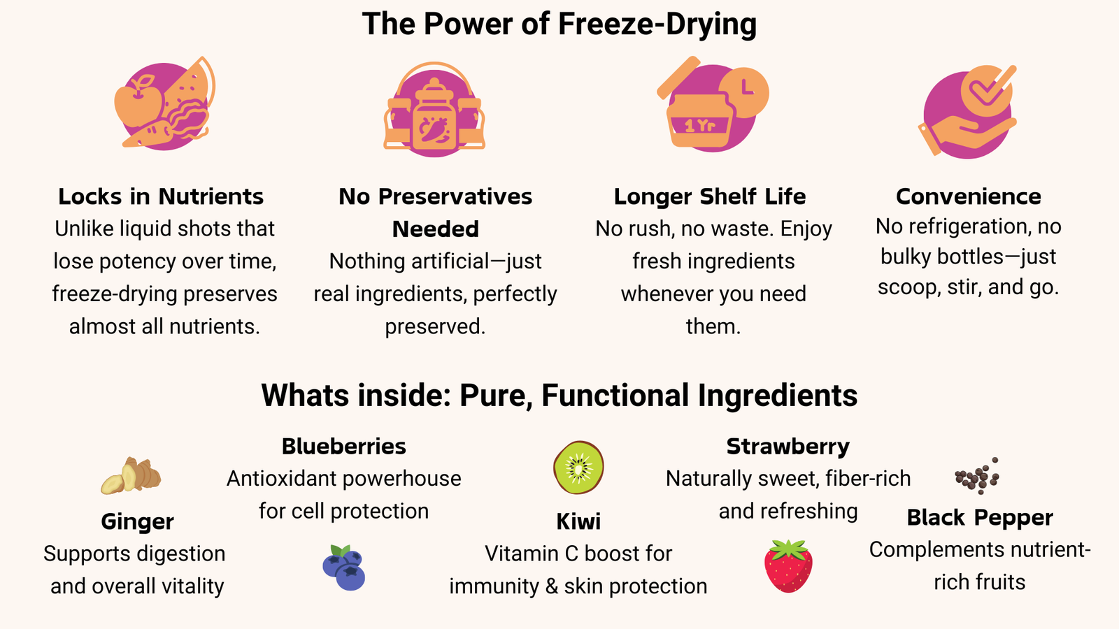 Our promise? Pure, powerful ingredients with zero compromise. No artificial fillers, no single-use plastic bottles—just real, functional nutrition in a format that fits your life.